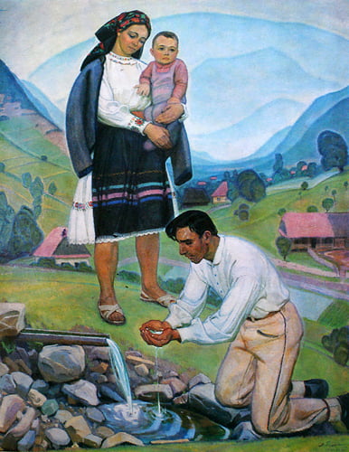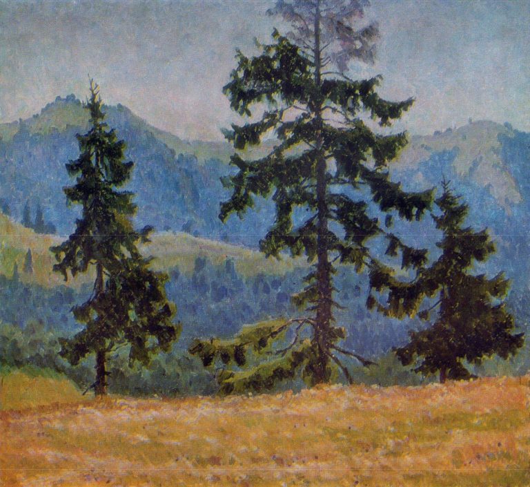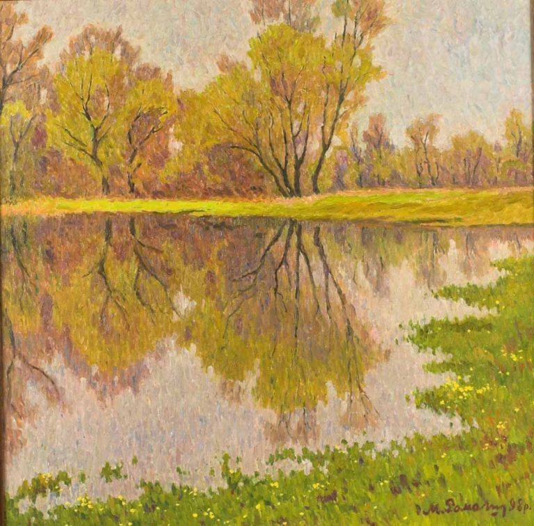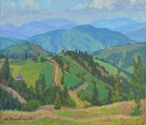 Позначені яскравою індивідуальністю митця пейзажі Михайла Романишина. Це — пе просто пейзажі. Всюди в них відчувається людина, діяння її розуму і рук. Живописець немовби прагне скористатися невичерпними можливостями мистецтва для передачі емоційного світовідчуття людини.