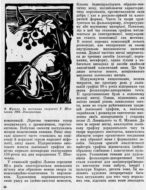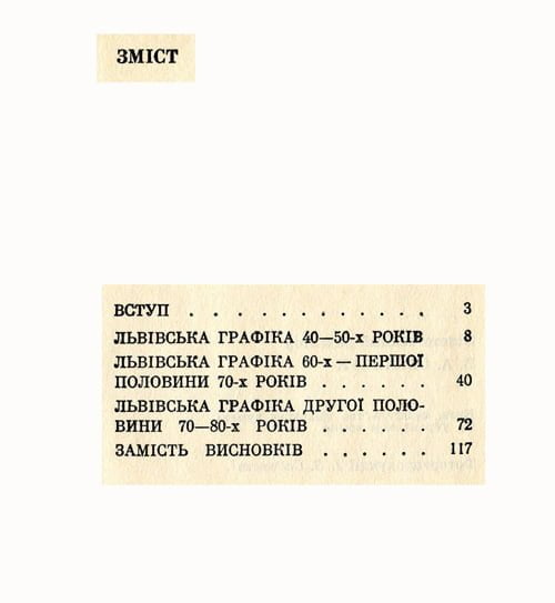 У книзі висвітлюються питання становлення й розвитку львівської станкової графіки повоєнного періоду. Розглядається її ідейно-естетичний зміст, простежуються зміни в тематиці й проблематиці, в системі жанрів, образно-пластичному мисленні художників. Основна увага приділяється проблемі традицій і новаторства, робиться справа визначити перспективи розвитку цього виду мистецтва.