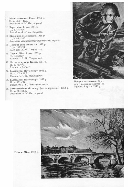 Анатолій Петрицький. Каталог. Упорядники Л. М. Петрицька та Д. О. ГорбачовКиїв, Спілка художників української РСР, 1968. 103 сторінки. Замовити книгу Дивись також: Анатолій Петрицький Пошук: Книги Сергій Алієв-Ковика. Малюнки, гравюри Владимир Куличихин. Мир символов Михаила Сапожникова На українському ґрунті: книжкова графіка Миколи Погрібняка. Каталог Святослав Божій. Альбом Alexander Archipenko. A Centennial Tribute Donald Karshan. Archipenko. Sculpture, Drawings and Prints. 1908—1963 Archipenko: Drawings, Reliefs, and Constructions Володимир Куткін. Графіка Анна Файнерман. Каталог виставки Степан Кириченко і Надія Клейн. Каталог Виставка творів Данила Івановича Безуглого. Каталог Українські народні пісні. Комплект листівок David Chichkan Петро Петрович Печорний. Каталог виставки творів Молоді художники. Живопис. Комплект листівок Всі книги