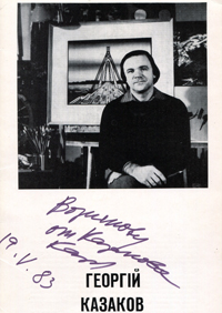 Георгій Казаков. Каталог виставки творівКиїв, 1983. Дивись також: Георгій Казаков. Завантажити PDF (1,64 МБ) Пошук: Книги Ніна Божко. Живопис. Графіка Графіка Івана Крислача. Каталог Зеновій Кецало. Графіка. Каталог виставки Зеновій Флінта. Живопис. Графіка. Кераміка. Каталог Василь Безуля. Каталог виставки творів Vladimir Makarenko. St. Petersbourg. 1976. Aquarelles Т. Г. Шевченко. Графіка Сергій Алієв-Ковика. Малюнки, гравюри Владимир Куличихин. Мир символов Михаила Сапожникова На українському ґрунті: книжкова графіка Миколи Погрібняка. Каталог Святослав Божій. Альбом Alexander Archipenko. A Centennial Tribute Donald Karshan. Archipenko. Sculpture, Drawings and Prints. 1908—1963 Archipenko: Drawings, Reliefs, and Constructions Володимир Куткін. Графіка Всі книги