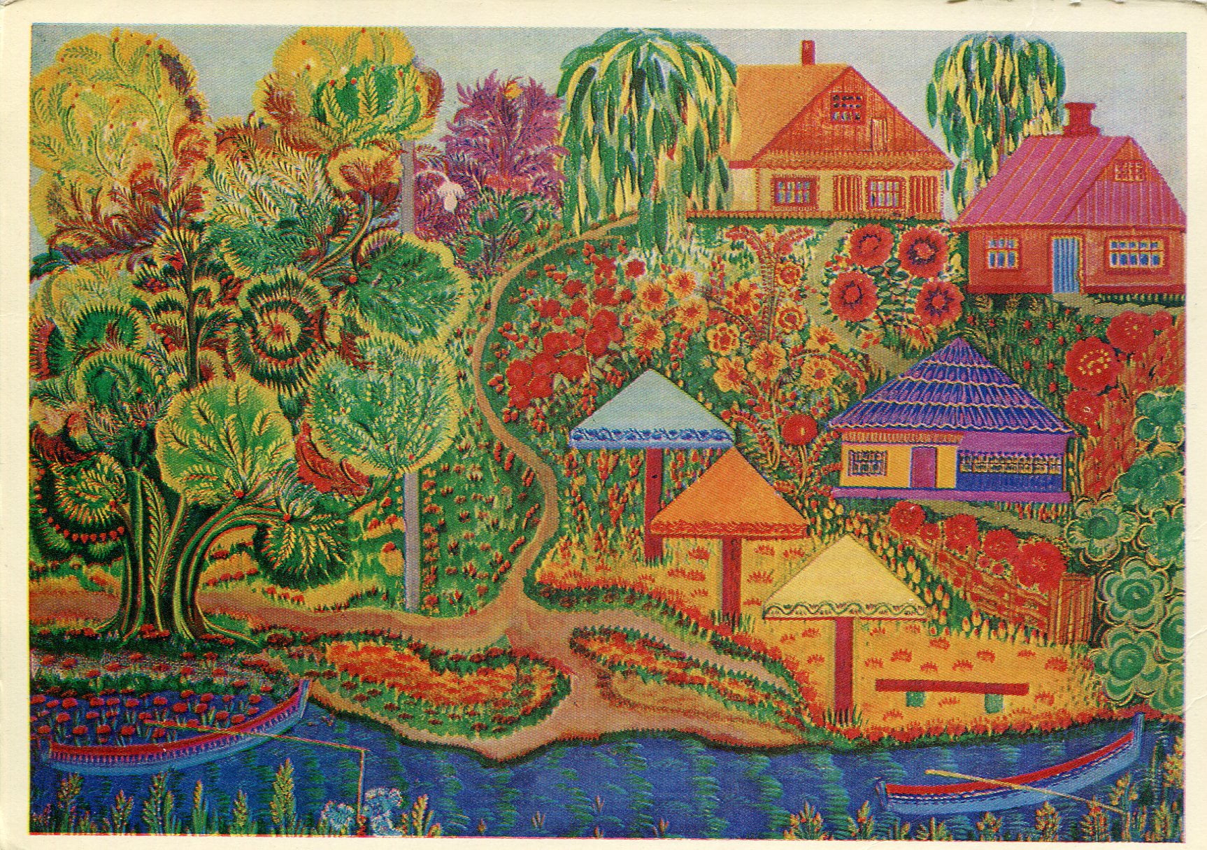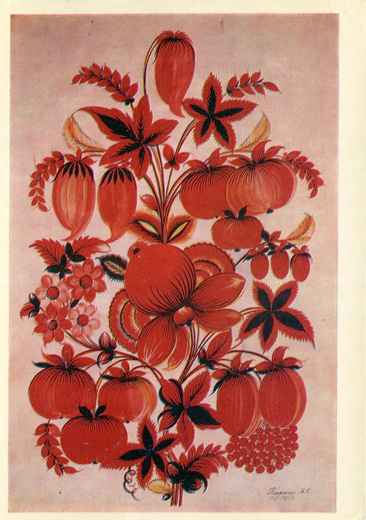 Марфа Ксенофонтівна Тимченко — майстер великого хисту і ши­рокого діапазону. Народилася вона 25 березня 1922-о року в селі Петриківка на Дніпропетровщині. Видатну роль у становленні Марфи Тимченко як художниці відіграла школа декоративного мистецтва, відкрита у Петриківці 1936-о року. Викла­дачі цієї школи — народні майстри. Вчили вони своїх учнів на зраз­ках місцевого, петриківського, орнаменту — спочатку учні копіювали твори старших прославлених петриківчанок (особливо часто звер­талися до творів Надії Білокінь), а потім переходили до власної творчої праці. І це вони робили під орудою таких майстринь, як відома вже й тоді Тетяна Пата. Декоративне малювання, яке досі було звичайним заняттям для кожного петриківчанина, набу­вало тепер характеру професії.