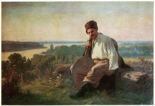 У 1875-у році художник намалював один з найвідоміших своїх творів “Кобзар над Дніпром”, на якій зображено Тараса Шевченка, але здається, ніби це простий український селянин, працівник і хлібороб.